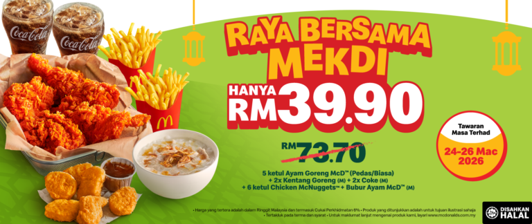 Istimewa Aidilfitri ini, dari 24 hingga 26 Mac 2026, layan kombo hidangan Mekdi kegemaran hanya RM39.90! Nikmati yang anda suka...