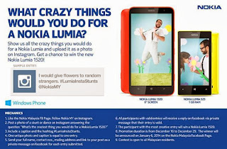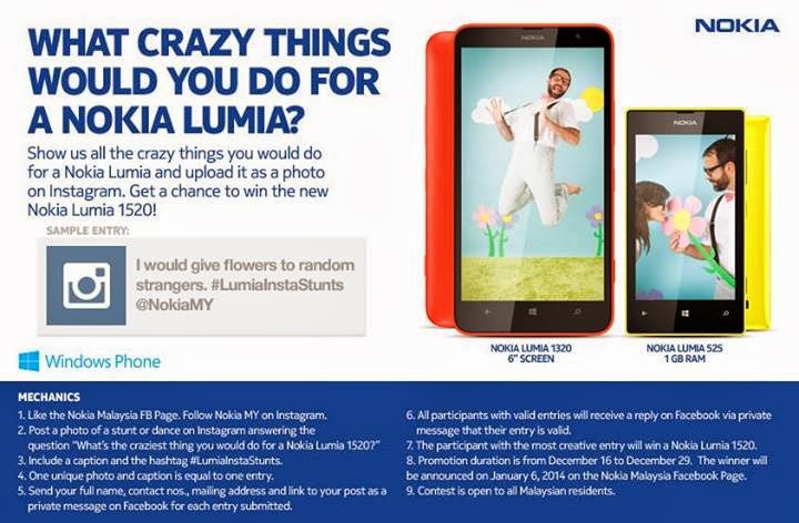 * Post a photo of a stunt or dance on Instagram answering the question “What’s the craziest thing you would do for a Nokia Lumia 1520?”
